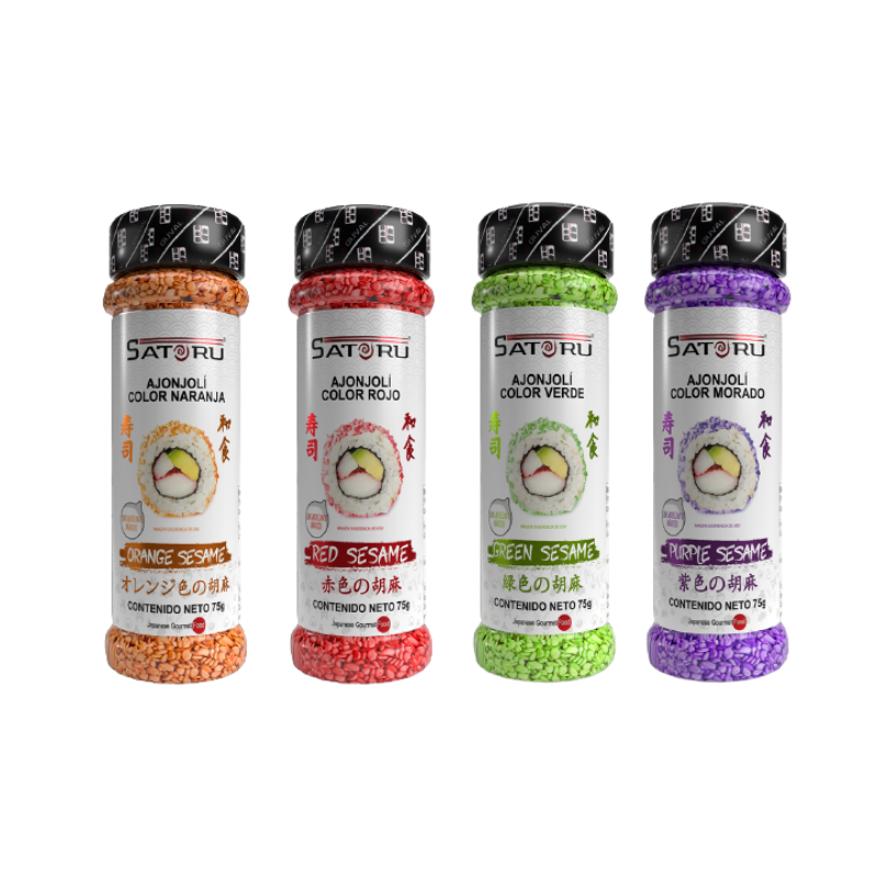 ¡Dale una nueva presentación a tus platillos! El Ajonjolí de colores, NO TIENE SABOR AÑADIDO, se emplea en la gastronomía, repostería y para decorar rollos temáticos o de temporada, como Halloween, San Valentín, Navidad, etc. Prepara nuevas y divertidas recetas para tus personas favoritas.